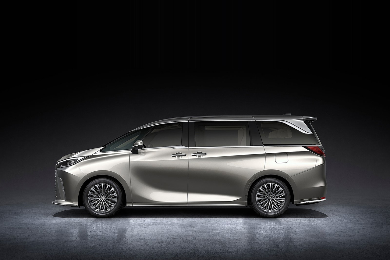 렉서스 LM의 외관은 스포티함과 우아함을 함께 지니고 있으며, 날카로운 헤드라이트와 대형 그릴이 특징입니다.