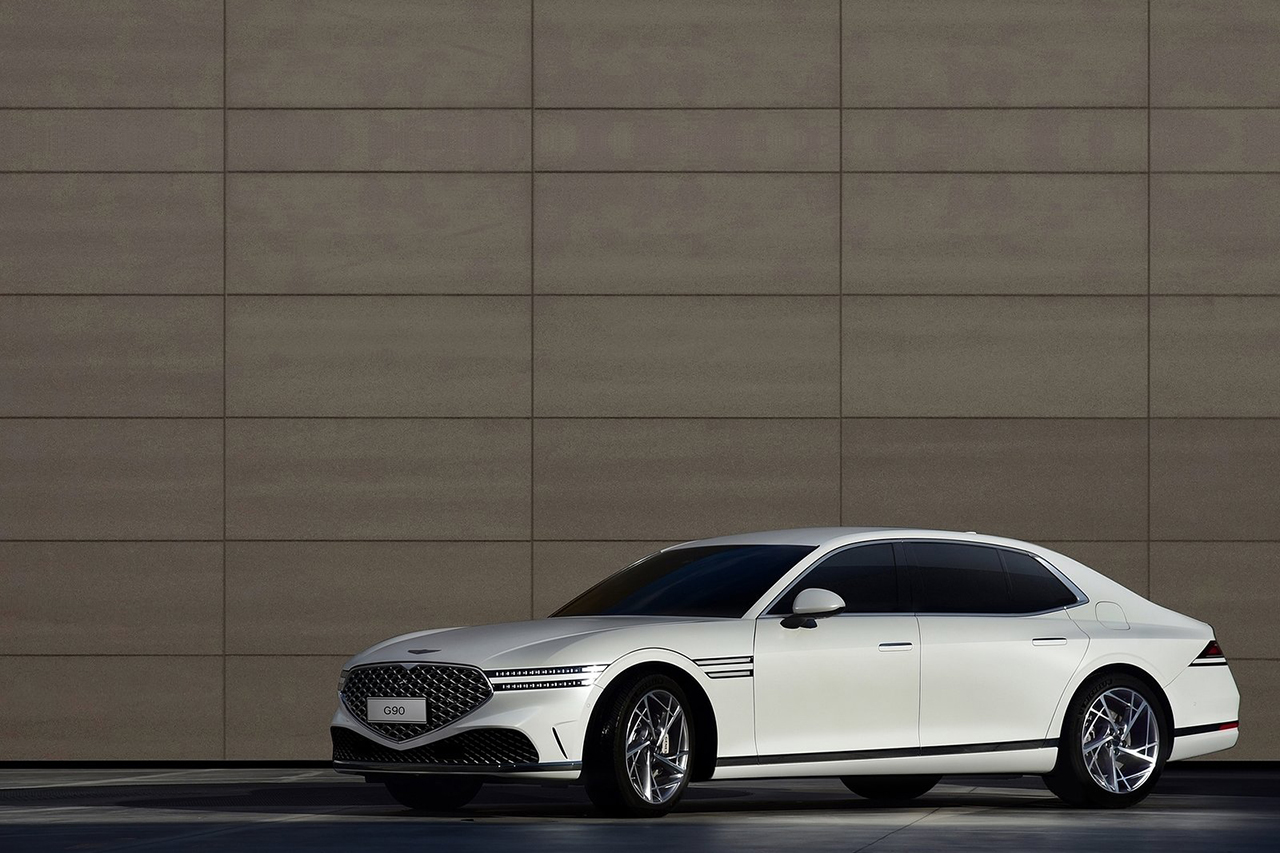 G90의 크기는 전장 5,280mm, 전폭 1,930mm, 전고 1,490mm, 축간거리 3,160mm로 웅장한 실루엣을 자랑합니다. 엔진은 3.5리터 가솔린 터보 및 일렉트릭 슈퍼차저를 탑재해, 최고출력 380마력과 최대토크 54.0kg.m를 제공합니다.