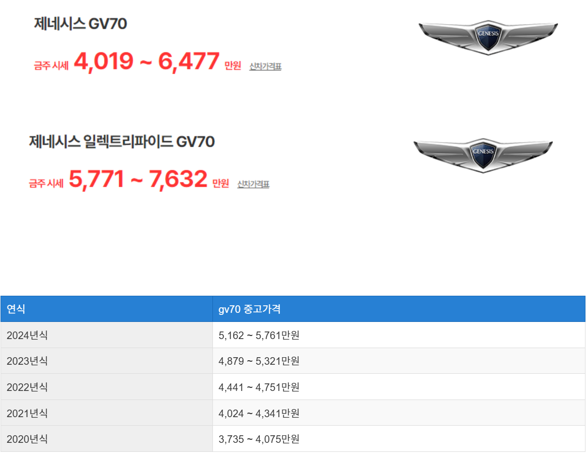 이 글이 제네시스 GV70, 중고차 가격, 연식별 시세, 차량 유지비를 고려하시는 데 도움이 되었길 바랍니다.