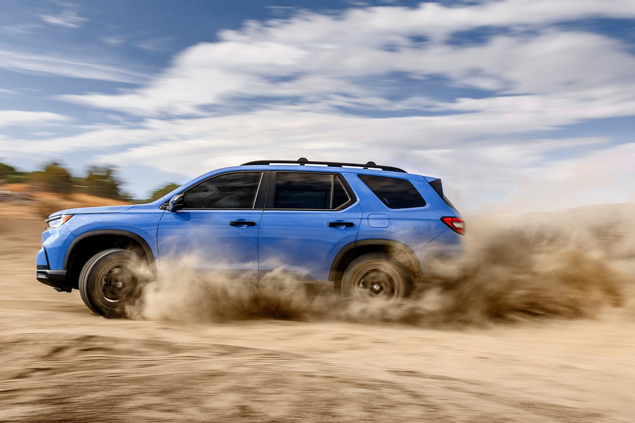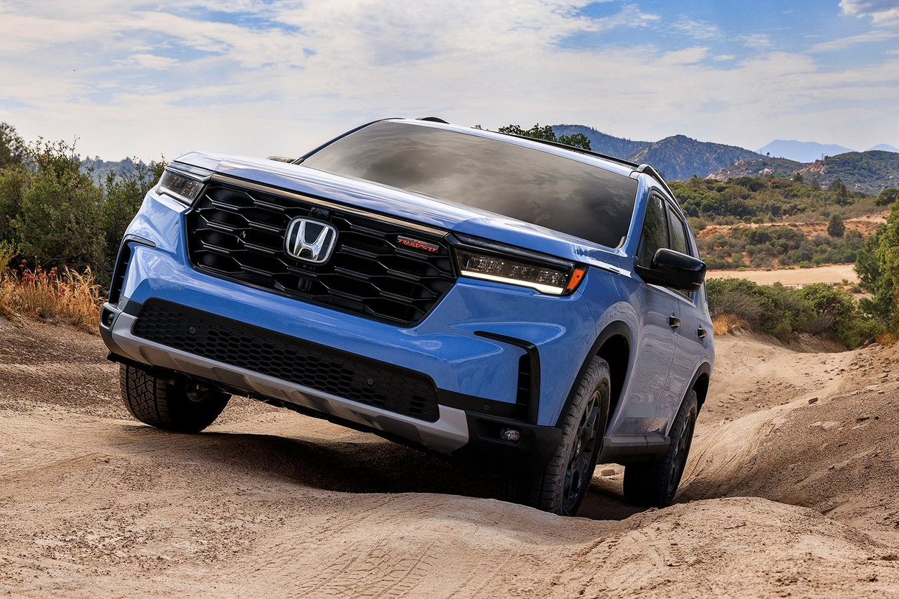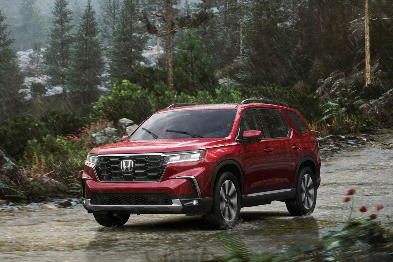혼다 파일럿은 세련된 외관 디자인을 갖추고 있습니다. 전면부의 강렬한 그릴과 날렵한 라인으로 스타일리시한 느낌을 줍니다.