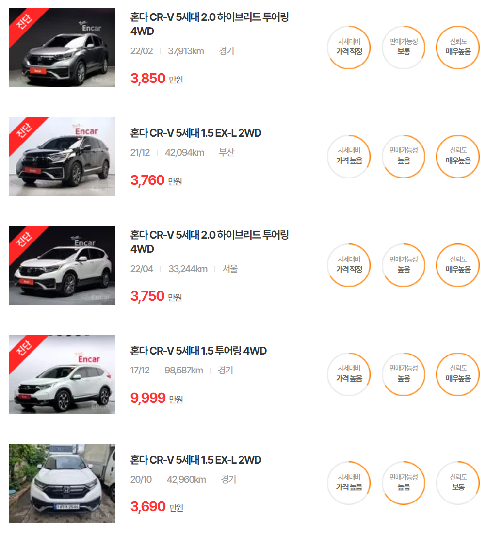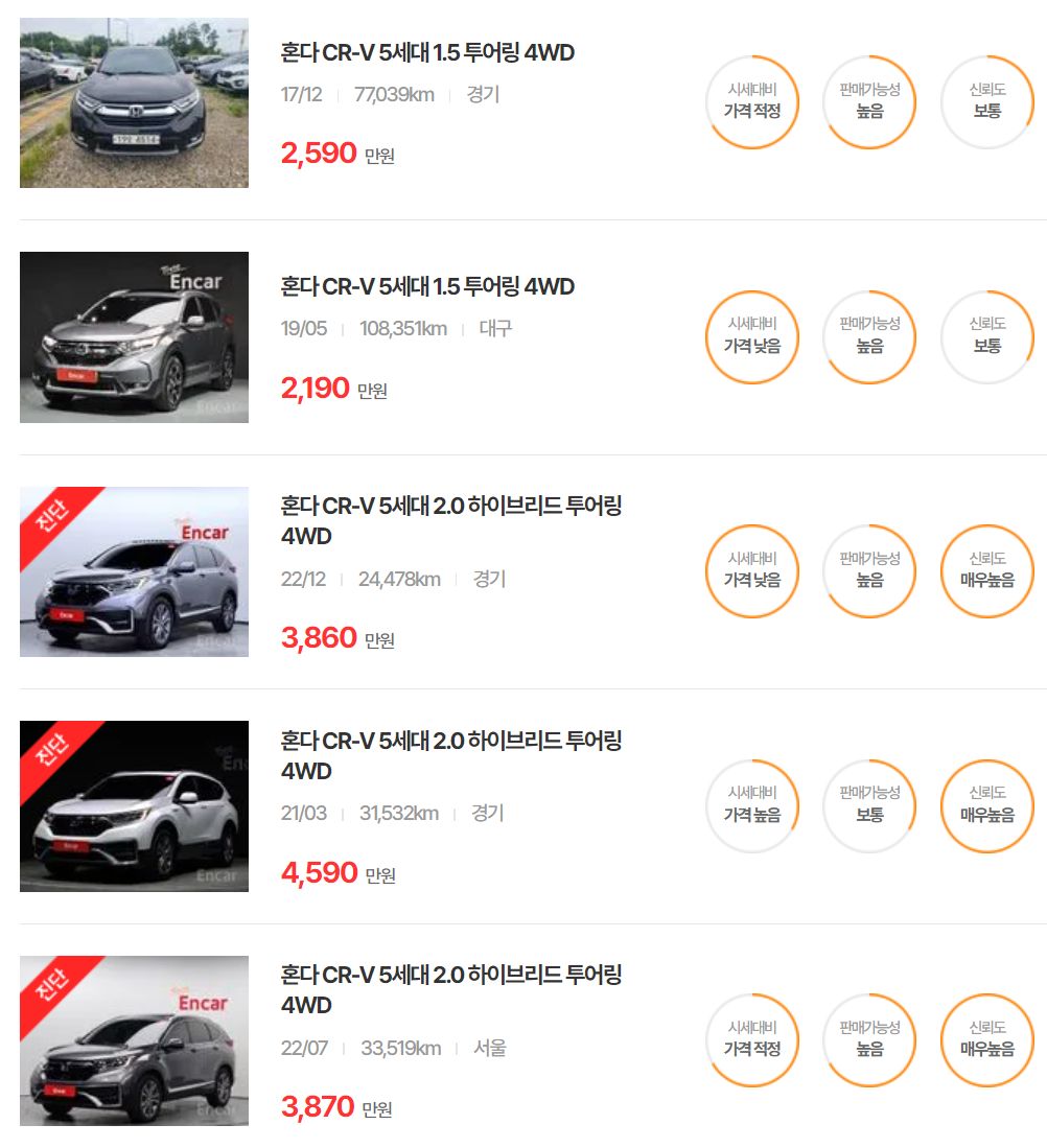 혼다 CR-V 중고차 가격
