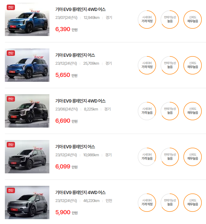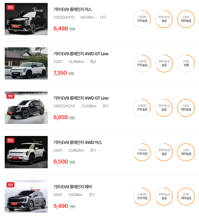 EV9 중고차 가격 시세표 | 25년 6월 기준